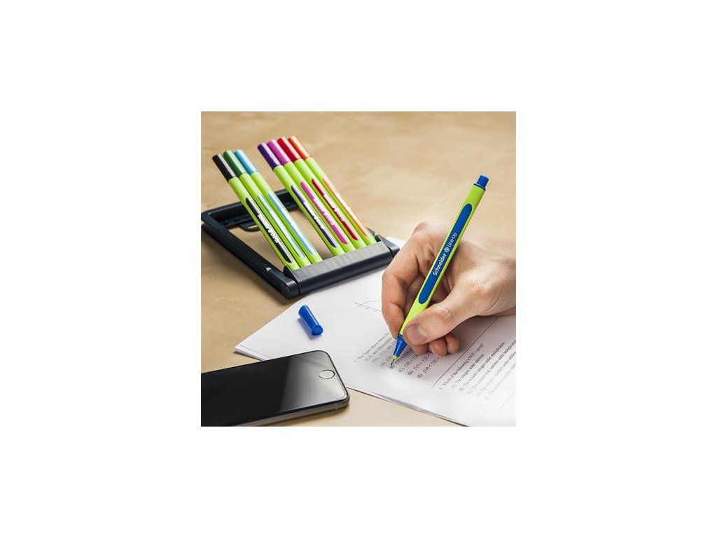 tenké a presné písmo plynulé písmo vďaka nehrdzavejúcemu hrotu atrament na báze vody zelené plastové telo telo v 88% z plastu s BIO základom gumované, trojuholníkové telo pera koniec pera sa zhoduje s farbou atramentu hrúbka písma: 0,4 mm 30 rôznych farieb astaviteľný držiak na linery vyrobený z recyklovaného plastu sada obsahuje 8 linerov v rôznych farbáchDodatočné parametre