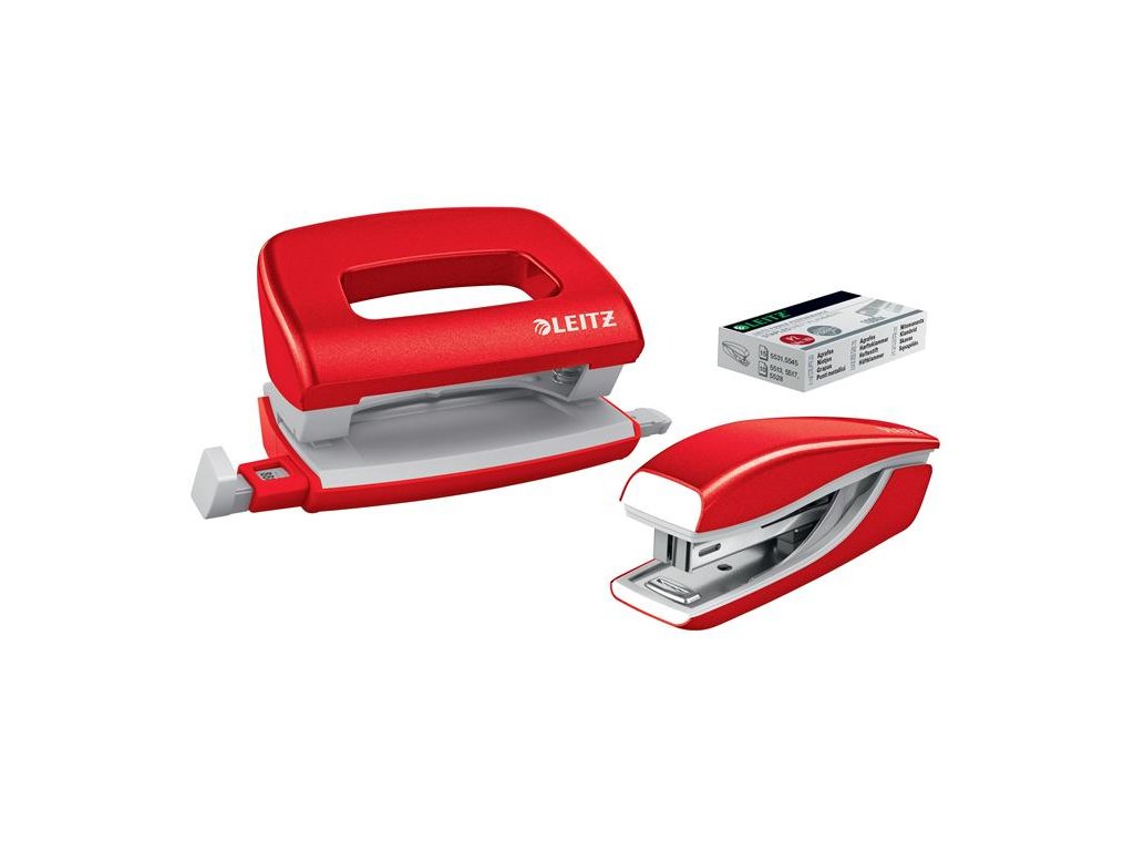 Sada zošívačky a dierovačky, 10 listov, kov, LEITZ "Wow Mini", červená