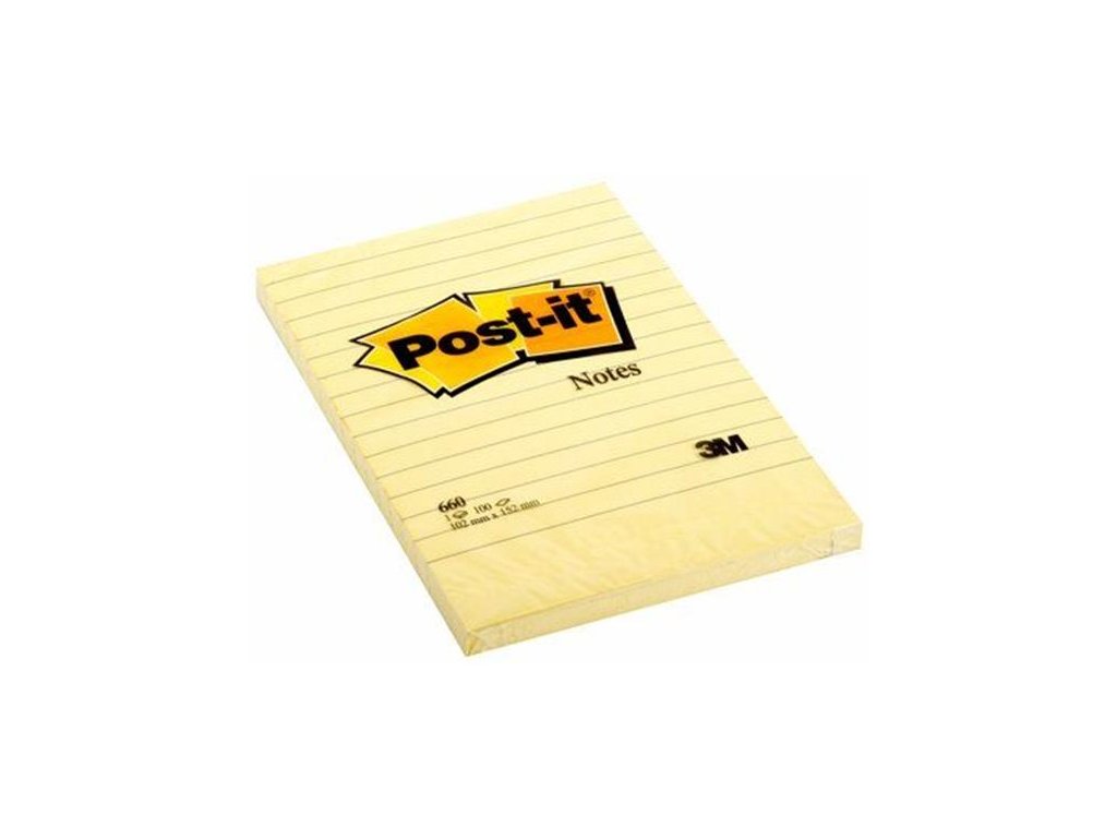 Samolepiaci bloček, 102x152 mm, 100 listov, linajkový, 3M POSTIT, žltý
