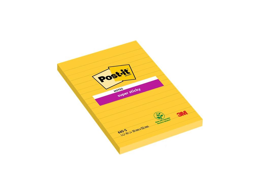 Samolepiaci bloček, 102x152 mm, 75 listov, linajkový, 3M POSTIT "Super Sticky", žltý