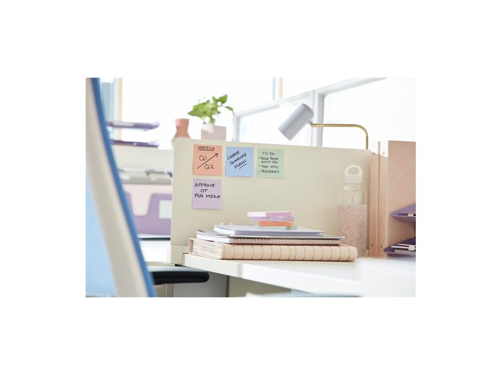 Oproti klasickým samolepiacim bločkom Post-it® poskytuje Post-it Super Sticky 2x silnejšiu priľnavosť. dokonalé lepenie na zvislé povrchy v zaujímavých farbách jemné farby lepidlo z obnoviteľných zdrojov, 60% rastlinného pôvoduDodatočné parametre