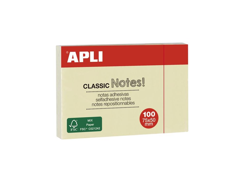 Samolepiaci bloček, 50x75 mm, 100 listov, APLI, žltý