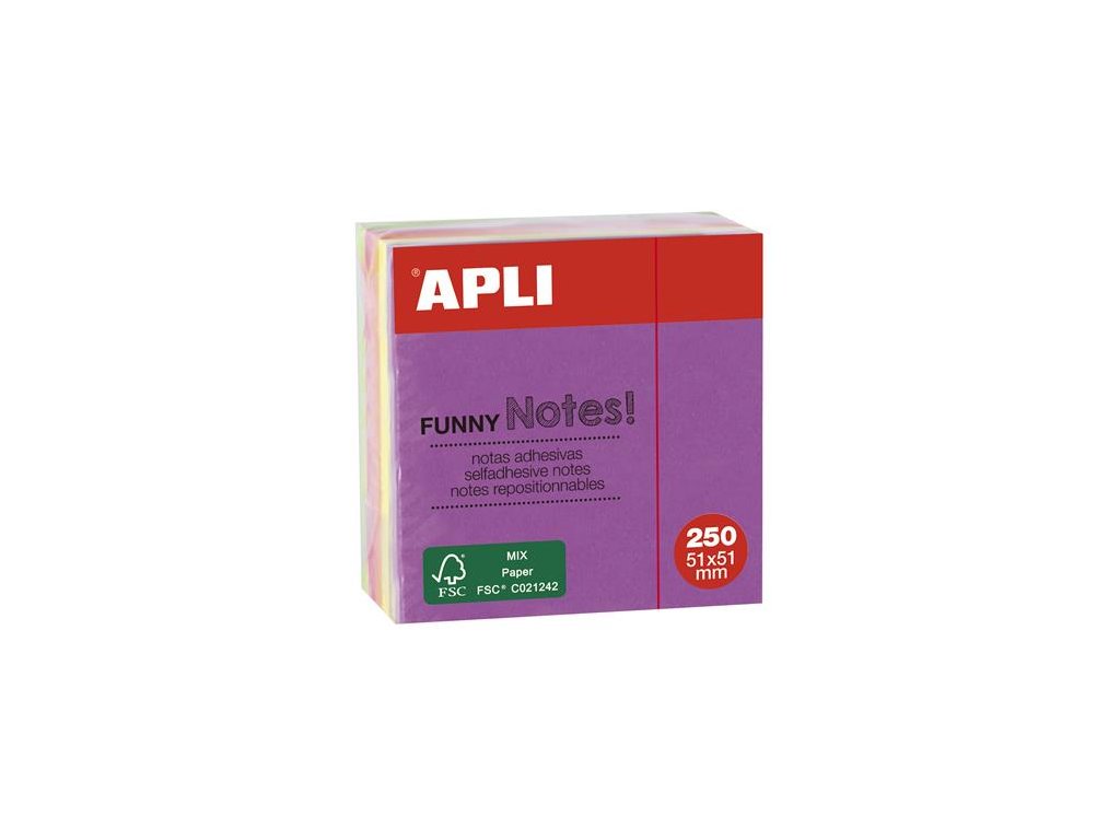 Samolepiaci bloček, 51x51 mm, 250 listov, APLI, neónový