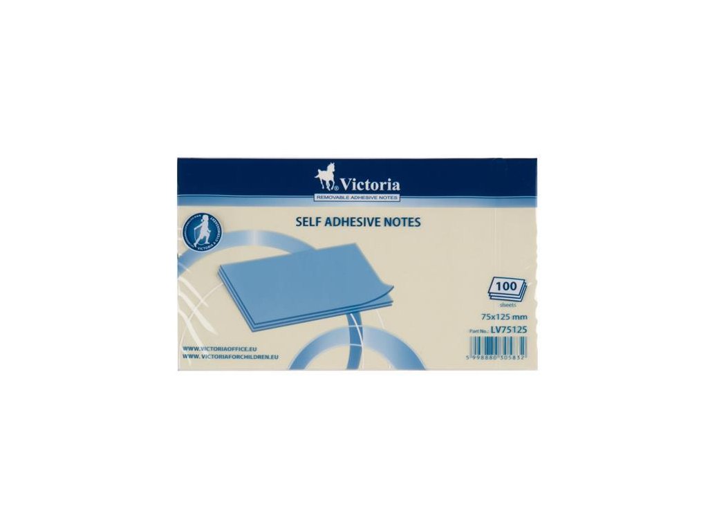 Samolepiaci bloček, 75x125 mm, 100 listov, VICTORIA OFFICE, žltá