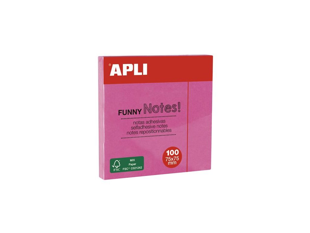 Samolepiaci bloček, 75x75 mm, 100 listov, APLI, neónový ružový