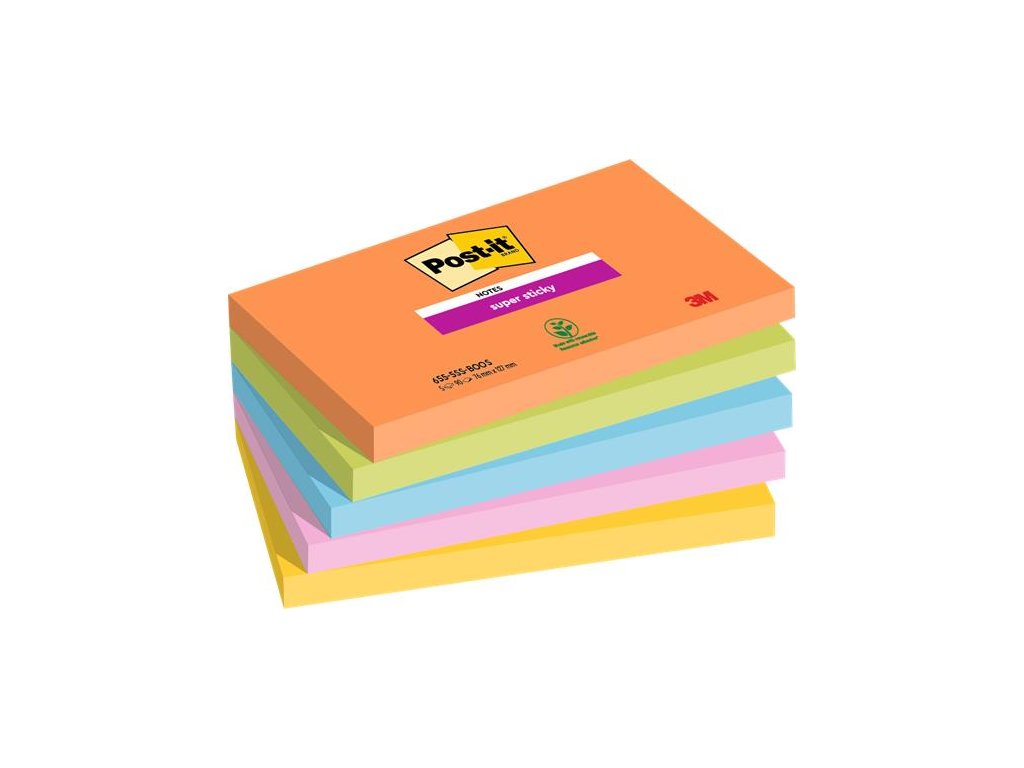 Samolepiaci bloček, 76x127 mm, 5x90 listov, 3M POSTIT "Super Sticky Boots", mix farieb