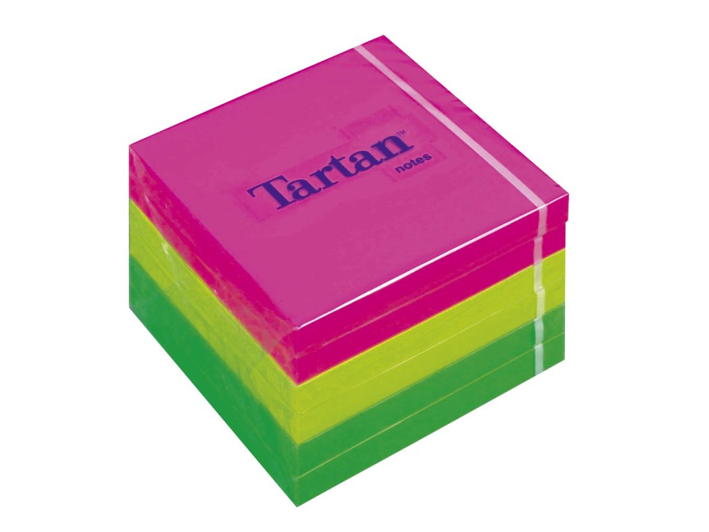 Samolepiaci bloček, 76x76 mm, 100 listov, 6 bločkov/bal, TARTAN, mix neónové farby
