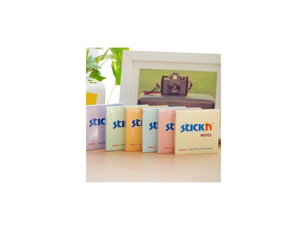 Samolepiaci bloček, 76x76 mm, 100 listov, STICK N, pastelovo žltá