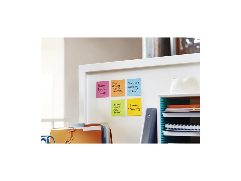- samolepiace bločky Post-it® Super Sticky majú dvojnásobnú priľnavosť ako originálne bločky Post-it® - sú mimoriadne pevné, všestranné a ich rôzne jemné, svetlé a jasné farby zvýraznia váš odkaz - silnejšia priľnavosť - ideálne pre vertikálne alebo ťažko priľnavé povrchy, ako sú monitory, dvere alebo steny - v žltej farbe - PEFC certifikovaný papier, z obnoviteľných a zodpovedne obhospodarovaných lesov, s lepidlom z obnoviteľných zdrojov, ktorý je vyrobený zo 60% viacročných rastlín -pomocou obalu z recyklovanej lepenky môžete zápisníky jednoducho uložiť na stôl alebo do skrinky a recyklovať ich, keď ich už nebudete potrebovať - balenie: 90 listov/blok - 12 blokov/balenieDodatočné parametre