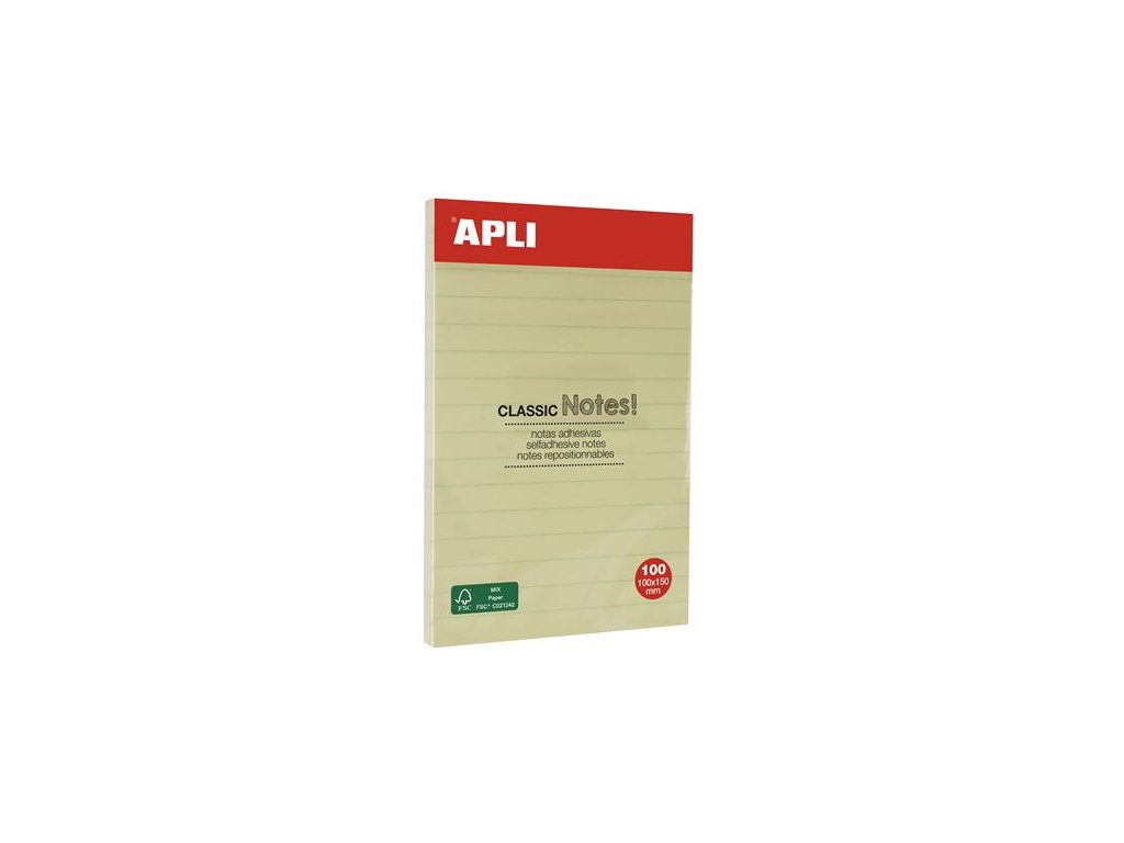 Samolepiaci bloček, linajkový, 100x150 mm, 100 listov, APLI, žltý