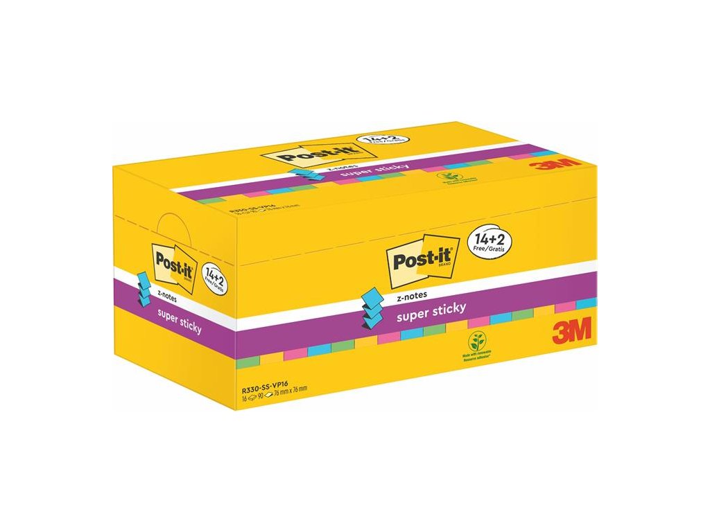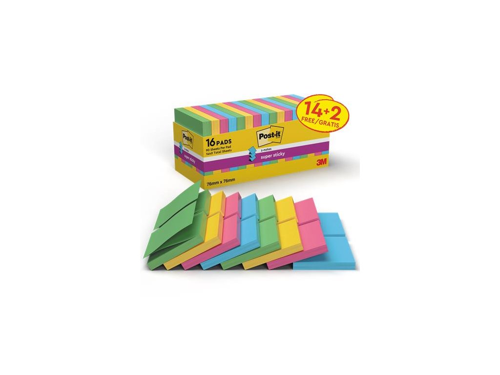 silná lepiaca schopnosť nalepí sa na aj na drsné povrchy farby: 90 listov, 16 bločkov azurro, žltá, fuksia, špargľa R330-P16SSCOL-EUDodatočné parametre