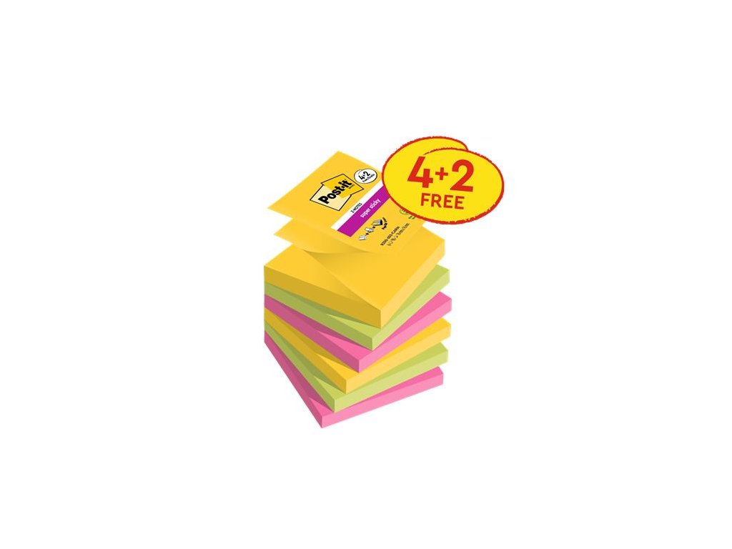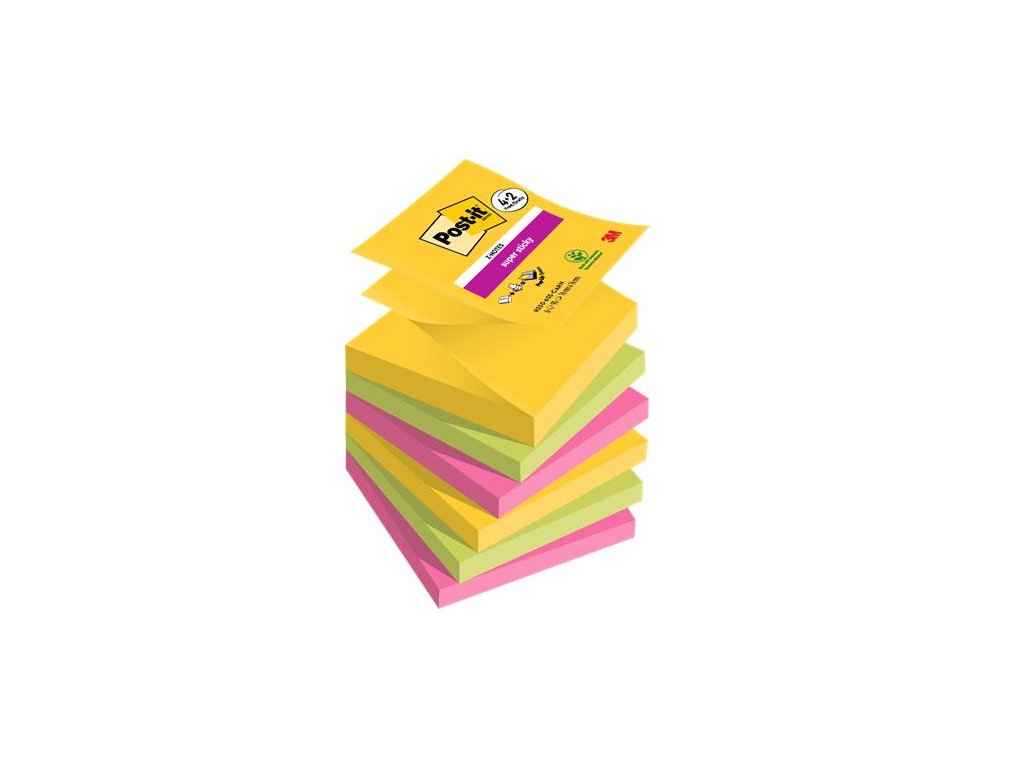 Post-it® Super Sticky samolepiace Z-bloky majú silnejšiu a dlhšie trvajúcu priľnavosť.