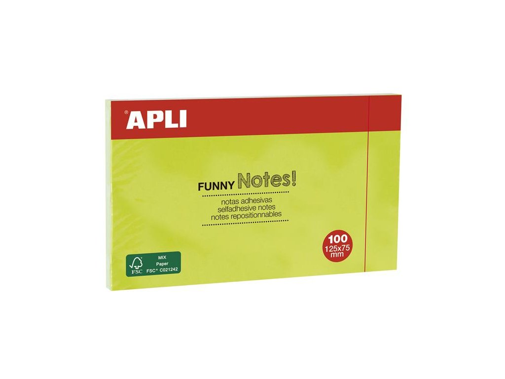 Samolepiaci blok, 125x75 mm, 100 listov, APLI, zelená