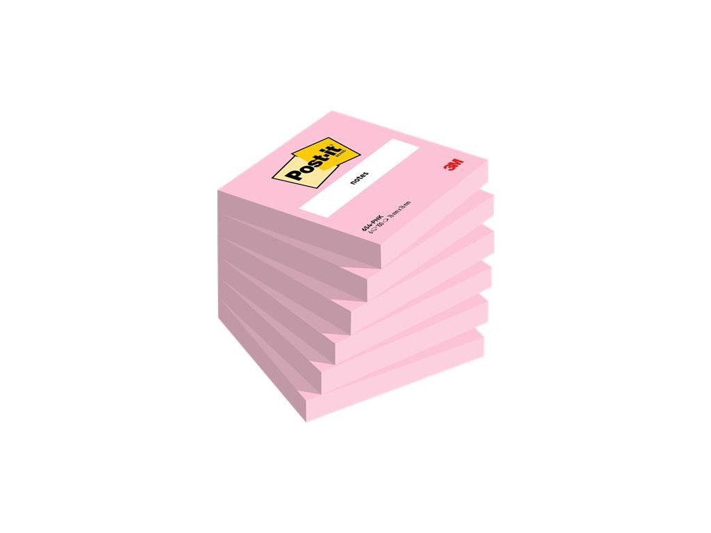 Samolepiaci blok, 76x76 mm, 6x100 listov, 3M POSTIT, ružová
