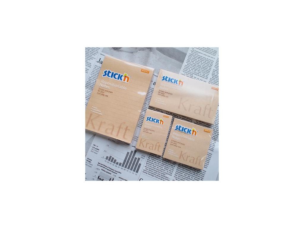 Samolepiaci poznámkový blok, 6x127 mm, 100 listov, STICK N "Kraft Notes", hnedá
