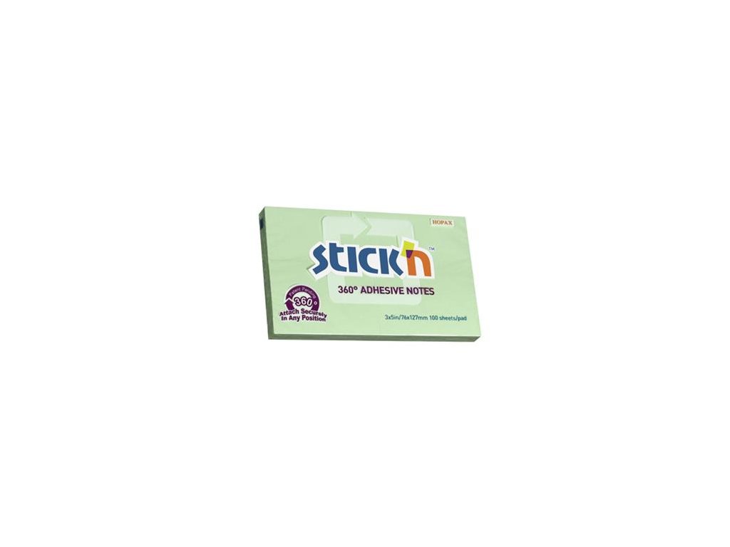 Samolepiaci poznámkový blok, 76x127 mm, 100 listov, STICK N „360°, zelená