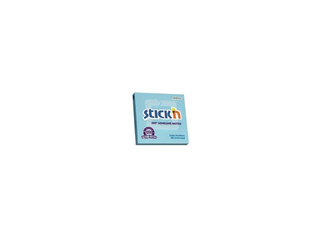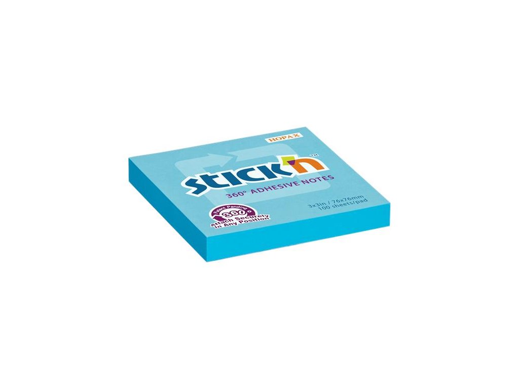 Samolepiaci poznámkový blok, 76x76 mm, 100 listov, STICK N „360°, modrá