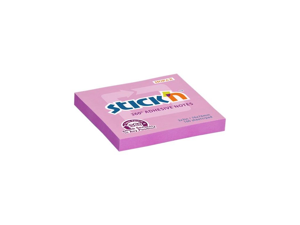 Samolepiaci poznámkový blok, 76x76 mm, 100 listov, STICK N „360°, ružová