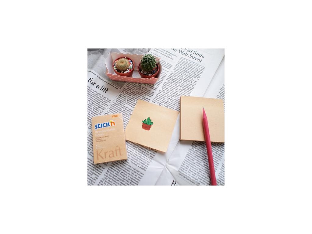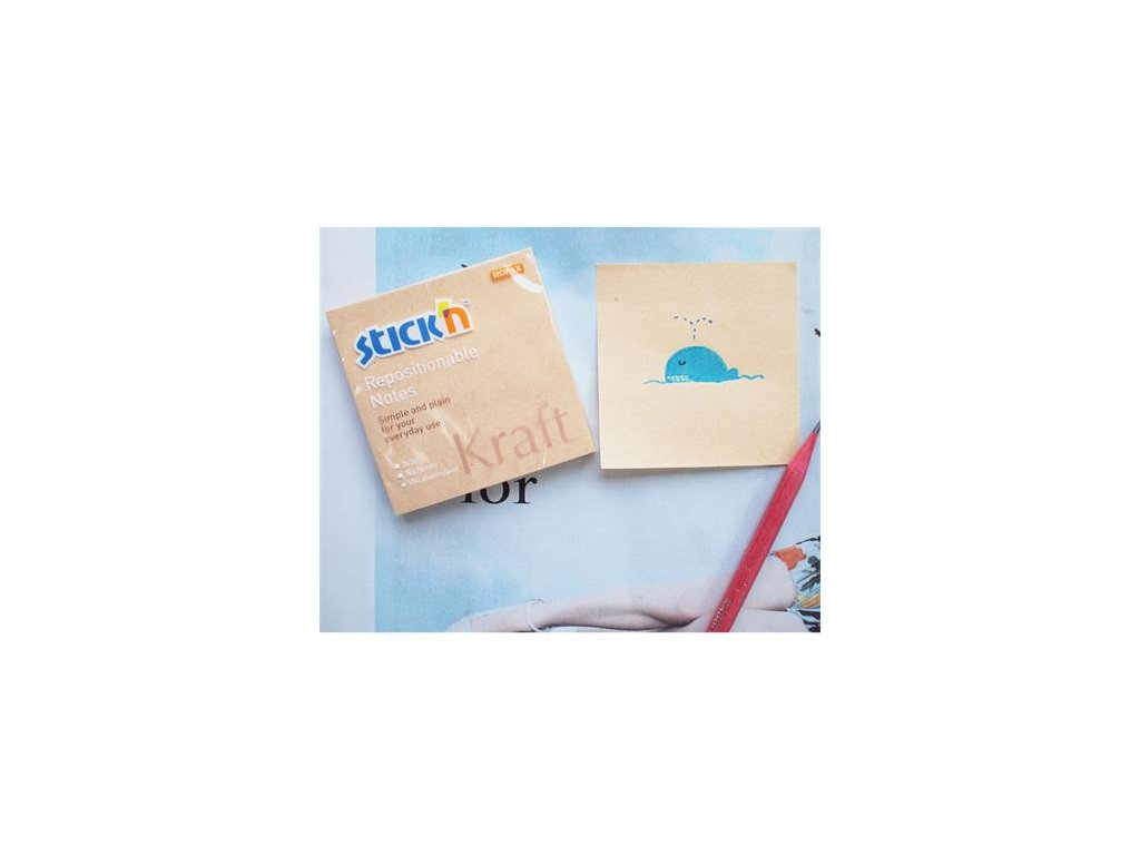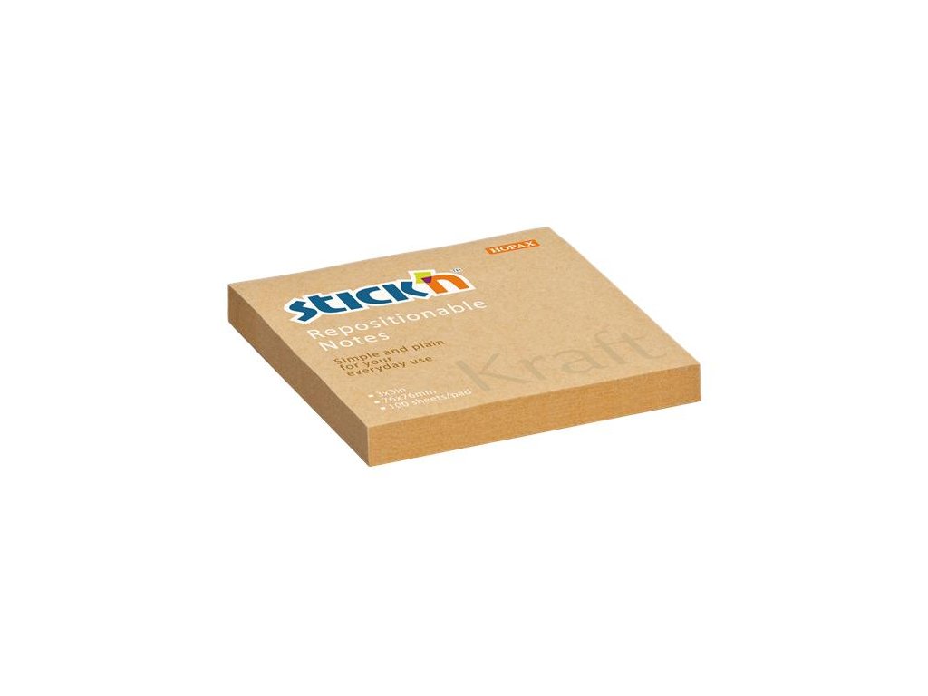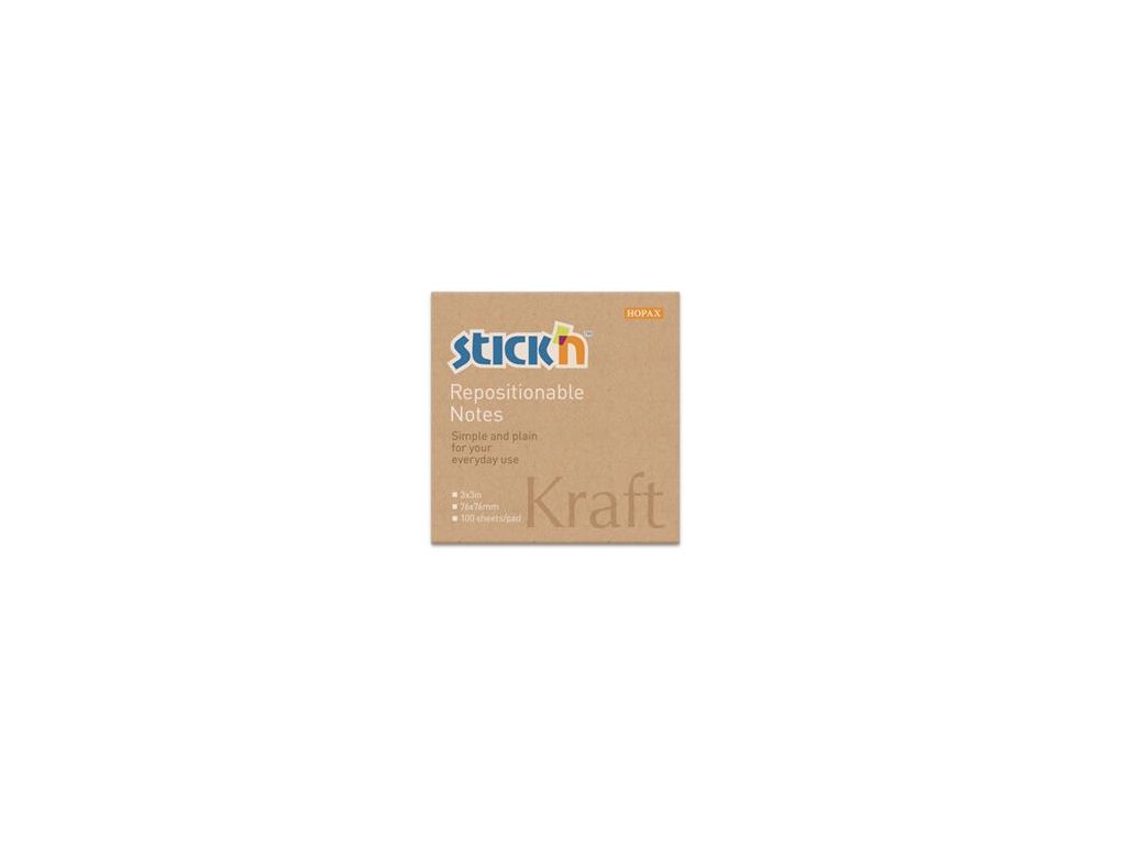 Samolepiaci poznámkový blok, 76x76 mm, 100 listov, STICK N "Kraft Notes", hnedá