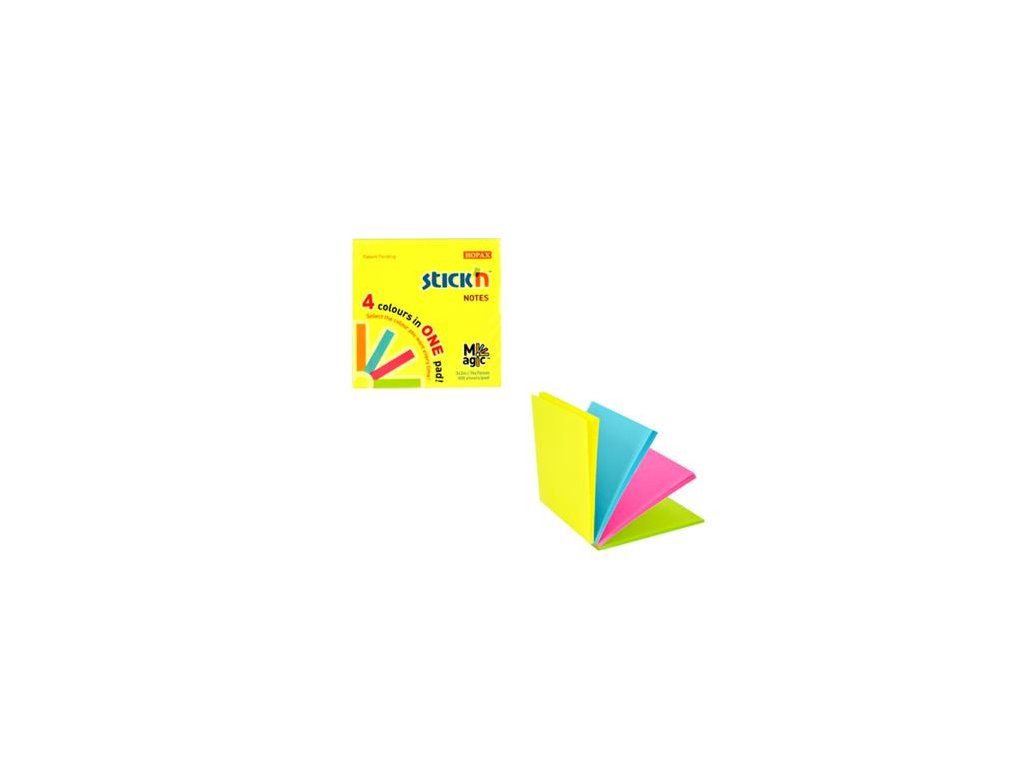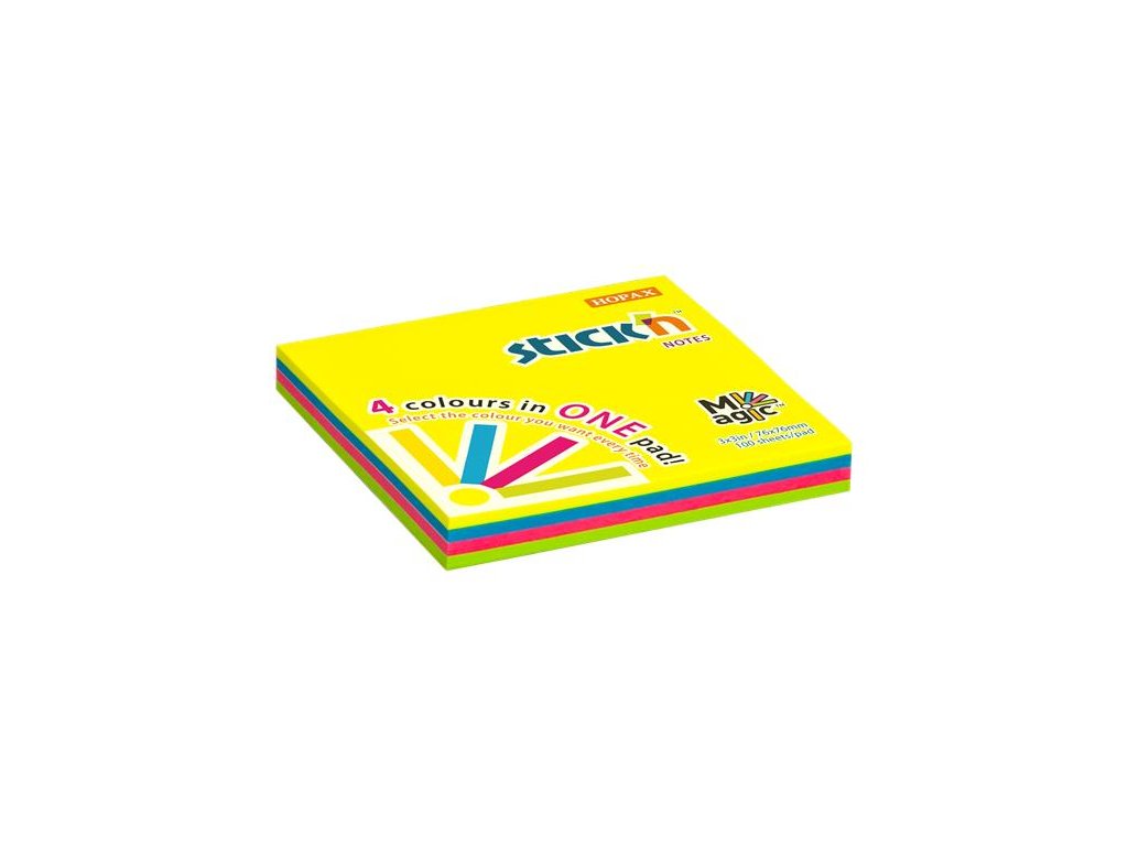 Samolepiaci poznámkový blok, 76x76 mm, 100 listov, STICK N "Magic Pad", neónové farby