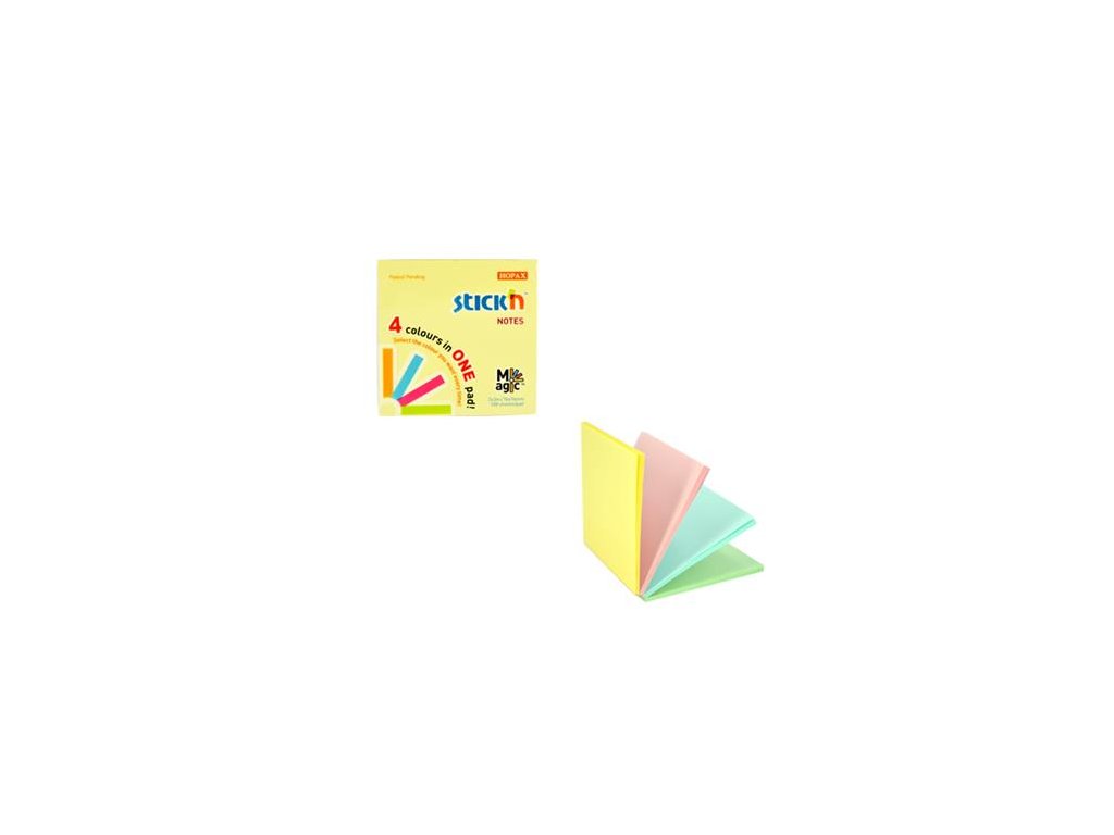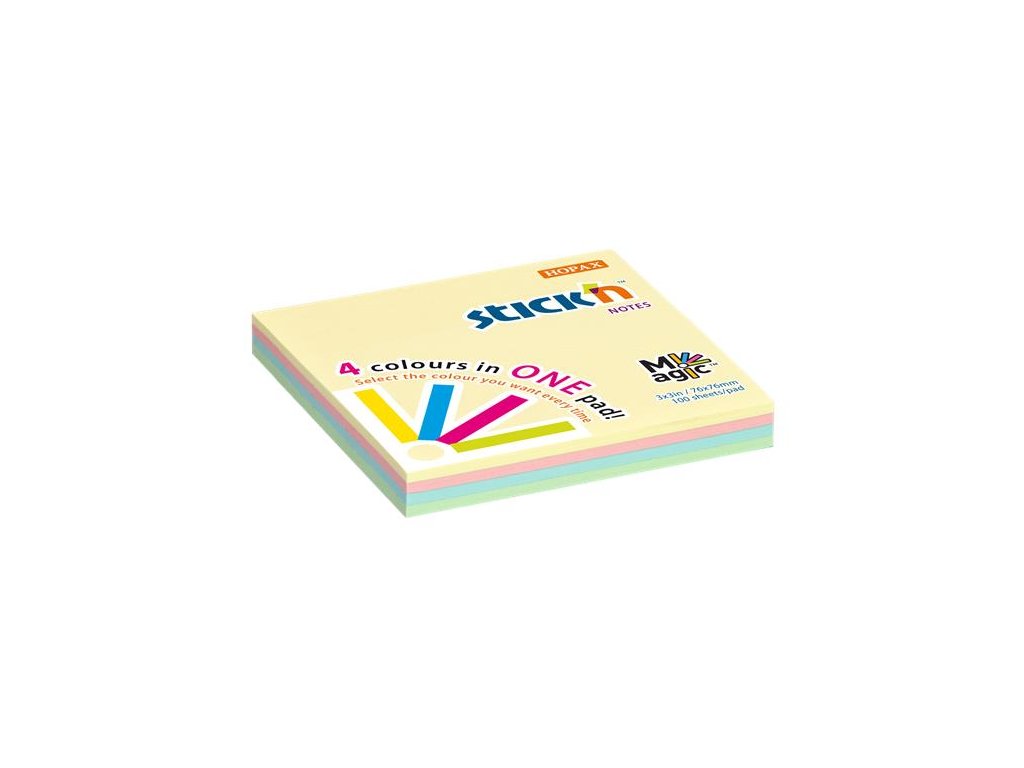Samolepiaci poznámkový blok, 76x76 mm, 100 listov, STICK N "Magic Pad", pastelové farby