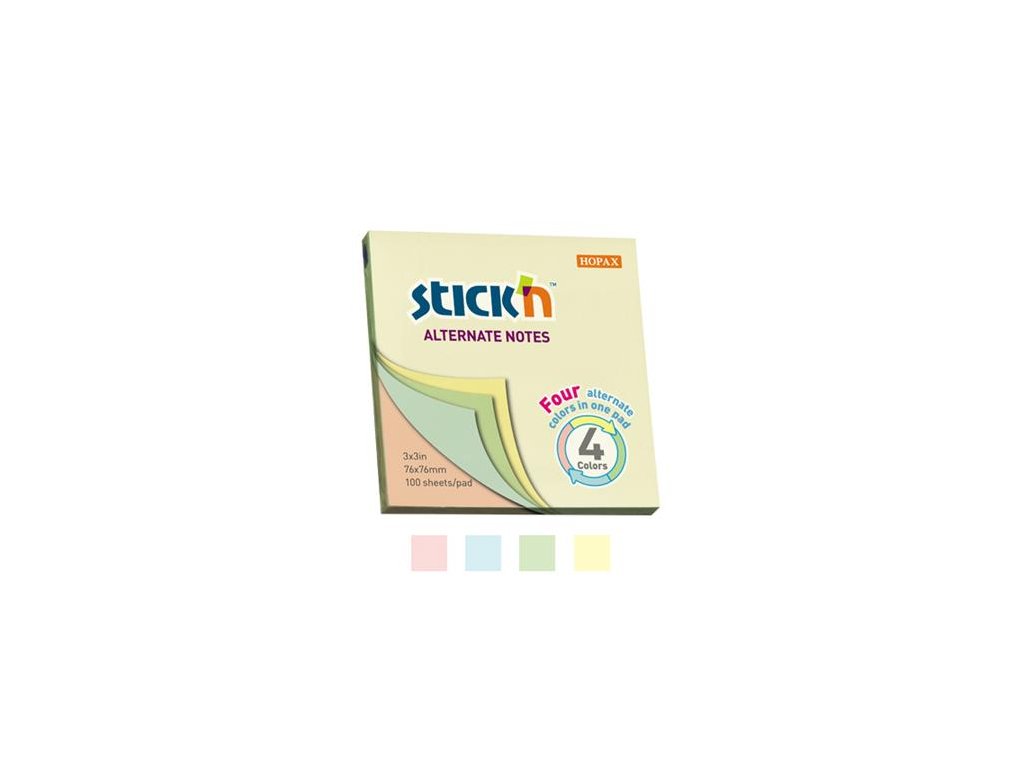 Samolepiaci poznámkový blok STICK'N - 4 druhy pastelových farieb/blok - 100 listov/blokDodatočné parametre