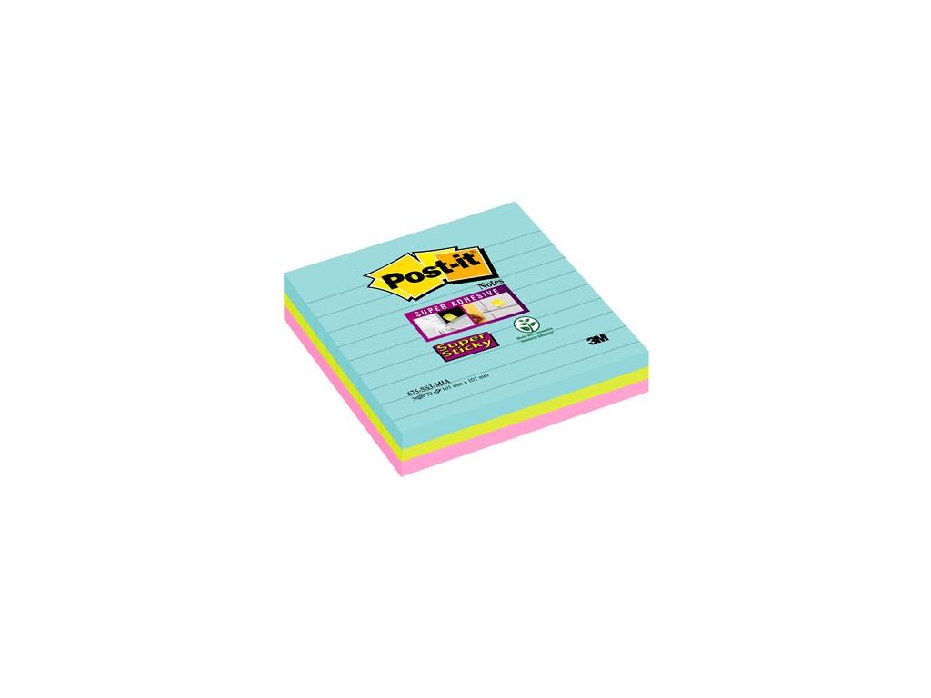Samolepiaci poznámkový blok, linajkový, 3x70 listov, 101x101 mm, 3M POSTIT "Super Sticky Miami", rôzne farby