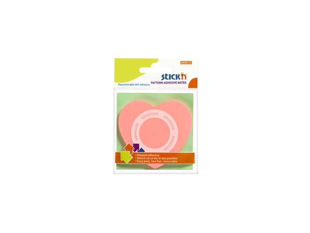 Samolepiaci poznámkový blok, srdce, 70x70 mm, 50 listov, STICK N, ružová