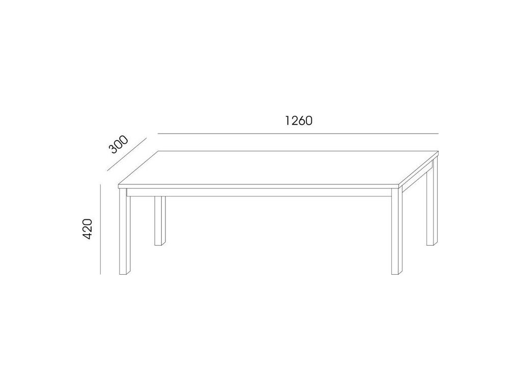 Rozmery: šírka 126 cm, hĺbka 30 cm, výška 42 cm