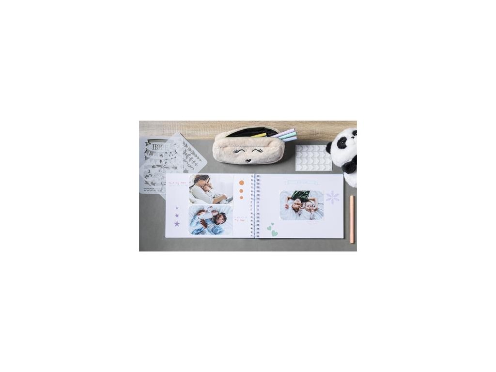 Vytvorte si osobný fotoalbum pre rodinu či priateľov na výnimočné príležitosti ako narodeniny, výročia či krstiny. -veľkosť: 32 x 22 cm -50 bielych, hladkých strán na zdobenie -špirálová väzba pre jednoduché listovanieSúprava obsahuje: -scrapbook -2 hárky nálepiek -2 šablóny s rôznymi motívmi -48 rámikov na fotografie -6 pastelových popisovačov v rôznych farbách