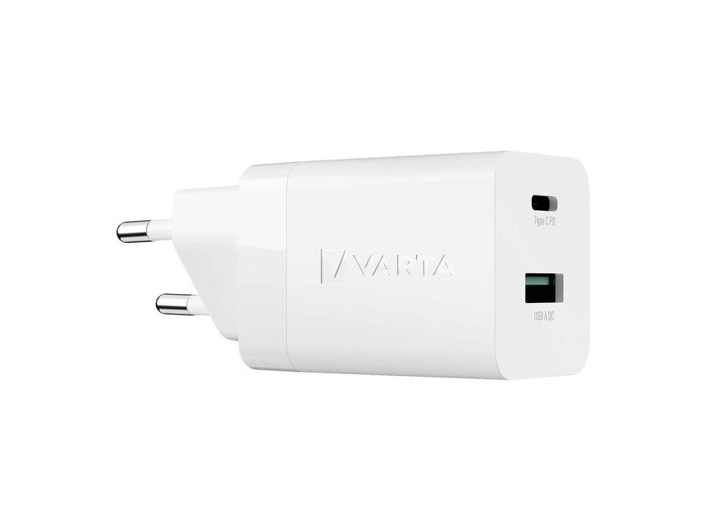 VARTA má široký sortiment nabíjacieho príslušenstva vrátane káblov, adaptérov, autonabíjačiek a ďalších! Spájajú v sebe spoľahlivý výkon a najnovšie technologické trendy, ktorých hlavným účelom je uľahčiť spotrebiteľovi každodenný život. - riešenie rýchleho nabíjania s 2 portami USB - celkom výkon: 38 W pre rýchle nabíjanie rôznych zariadení - najnovšia technológia GaN umožňuje vysoký výkon pri kompaktnej veľkosti produktu - Power Delivery a Quick Charge pre rýchle a inteligentné nabíjanie - 1x USB C PD výstup: 5 V/3 A; 9V/2,22A; 12 V/1,66 A (max. 20 W) - 1x USB A QC výstup: 5 V/3 A; 9V/2A; 12 V/1,5 A (max. 18 W) - vhodné pre nabíjanie až 2 zariadení súčasne - praktické a kompaktné rozmeryDodatočné parametre