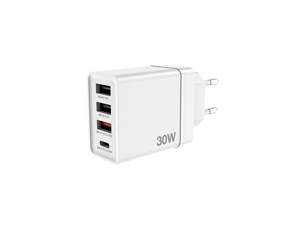 30W USB nástenná nabíjačka Verbatim kombinuje 4 porty v tenkom dizajne s EÚ zástrčkou. -podporuje súčasné nabíjanie až 4 zariadení s maximálnym celkovým výkonom 30 W -1 x USB-C® PD 3.0 až 20 W -1 x USB-A QC 3.0 až 18 W -2 x USB-A až 10 W - vyrobené z kvalitných, ohňovzdorných materiálov -nadprúdová ochrana -prepäťová ochrana -ochrana proti skratu -ochrana proti prehriatiu -materiál: Plast Telo: PC + ABS + Ohňovzdorný materiál -rozmery: 91,2 x 45,7 x 27,5 mm ( Š x V x H) Hmotnosť: 66 g - bezplastové balenieDodatočné parametre