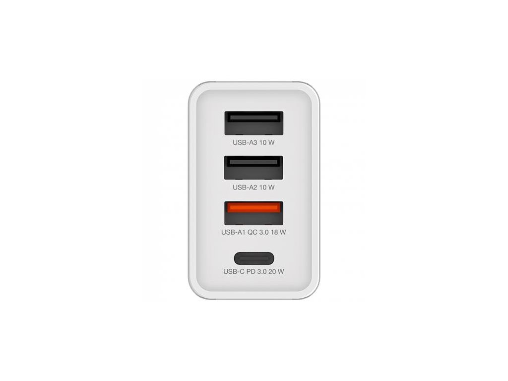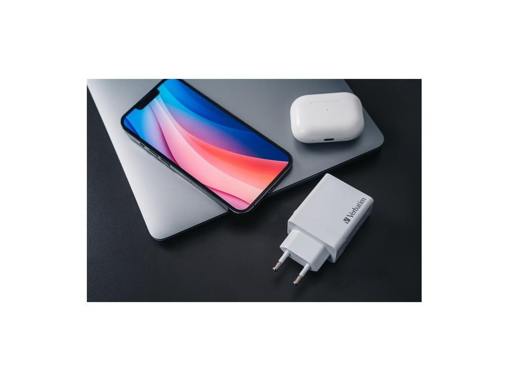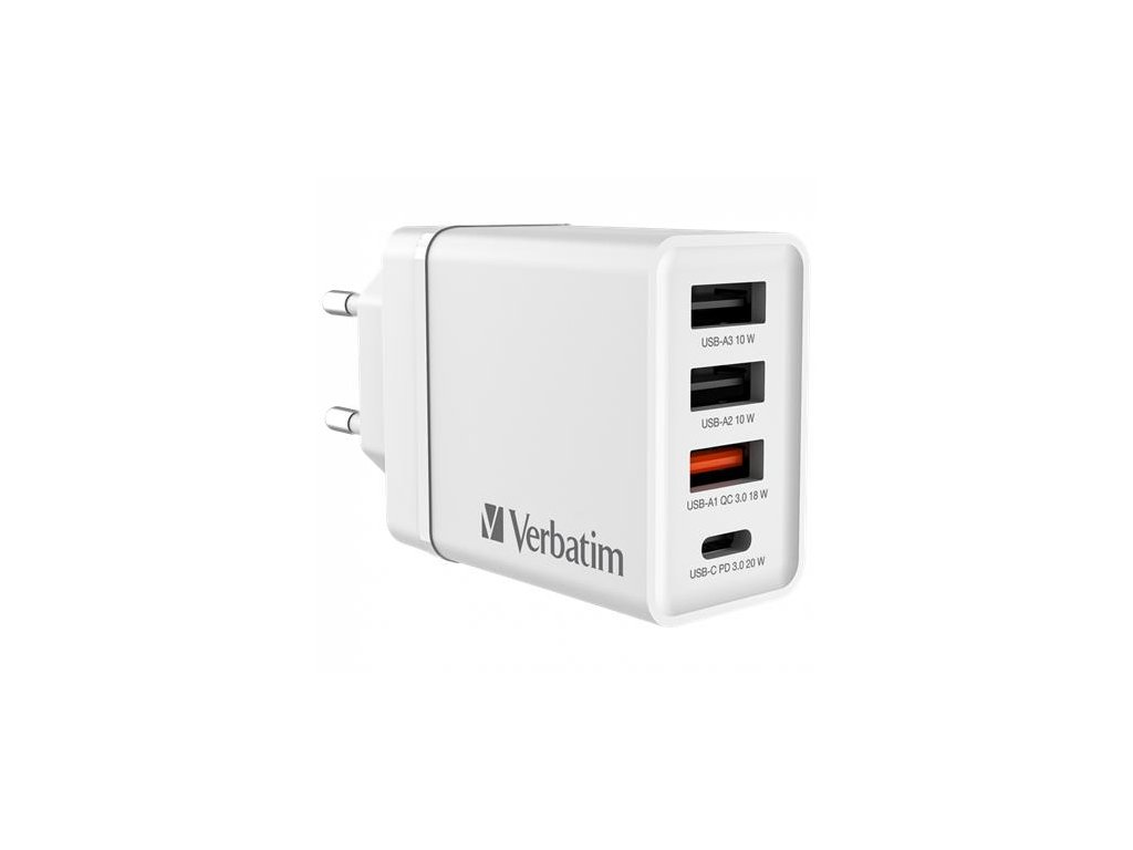 Sieťová nabíjačka, 1xUSB-C PD (20W), USB-A QC 3.0, 2xUSB-A (10W), VERBATIM, biela