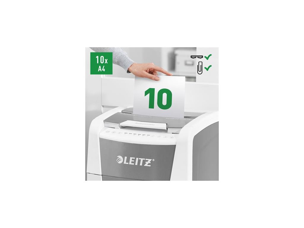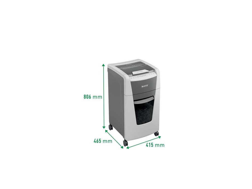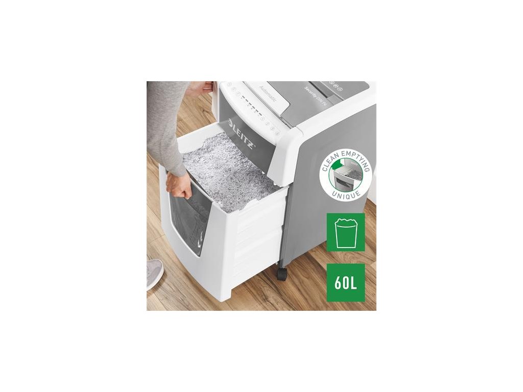 Tichá prevádzka - pre pokojnú prácu -automatické dávkovanie: max. 300 listov A4 -manuálny dávkovací otvor: max. Na 10 listov (80 g / m2) - Jedinečná funkcia čistého vyprázdňovania (rezačka sa otáča po každom použití), ktorá zabráni tomu, aby papierový odpad počas vyprázdňovania padal za odpadovú nádobu. -infračervený senzor nasýtenia nádrže Signál -80% nasýtenia varuje pred včasným vyprázdnením odpadovej nádoby -Extrémne tichý chod pre pokojné pracovné prostredie (s pravidelným používaním olejových platní Leitz) - bezlogická technológia na bezproblémové zničenie dokumentov (automatické zastavenie a výstup papiera pri vložení príliš veľkého množstva papiera) - nepretržitá prevádzková doba 60 minút umožňuje zničiť celý obsah vstupného zásobníka naraz -ECO režim je aktivovaný 3 minúty po použití -DIN P4 úroveň zabezpečenia konfety rezanie (4x30mm) -60L výsuvná nádoba na odpad, ktorá umožňuje zlikvidovať celý obsah vstupného zásobníka naraz -PIN kódom uzamknutý dotykový ovládací panel pre maximálnu spoľahlivosť a bezpečnosť ničí aj bankové karty, sponky a spinky -jednoduchý pohyb vďaka vysoko kvalitným kolesám rozmery: 415 (š) x 735 (m) x 465 (m) mm -2 + 1-ročná záruka (aj na rezacie nože) - zaregistrujte sa na ďalšiu 1-ročnú záruku Značka: LEITZ Výrobca: Esselte Kft. Adresa: 1139 Budapest, Lomb u. 37-39. A ép. II. 8., Hungary Web: https://www.accobrands.com/brands/ Email: hungarymarketing@acco.comDodatočné parametre