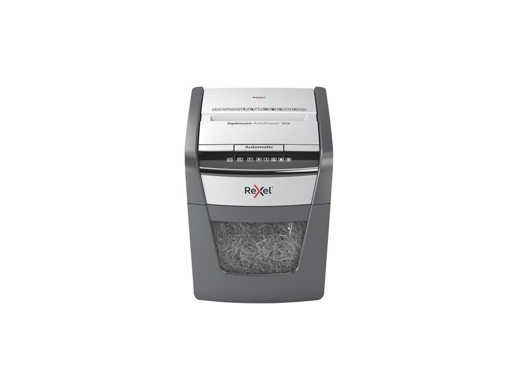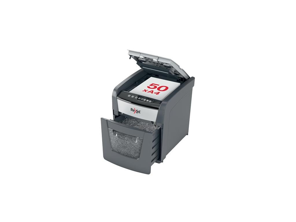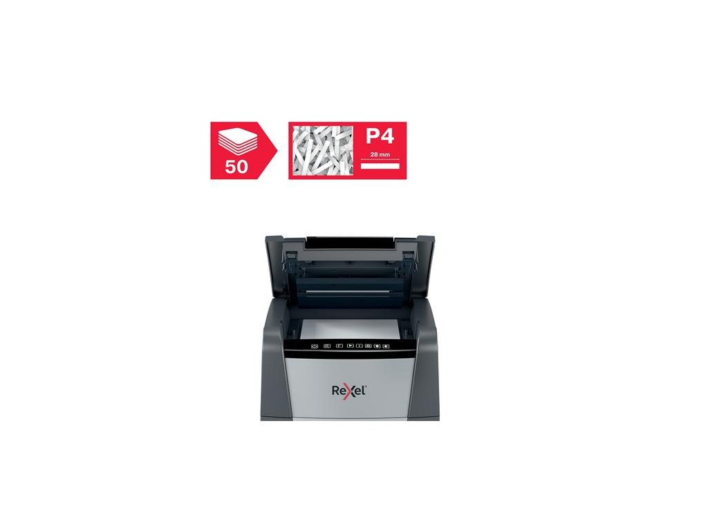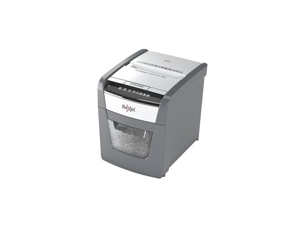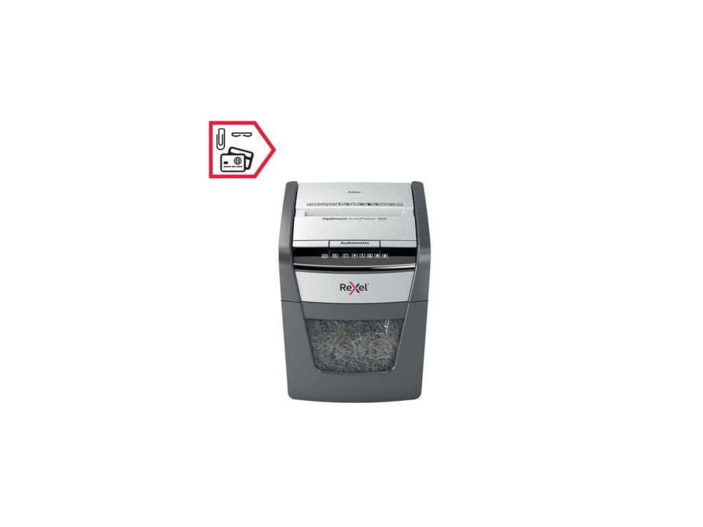 Skartovací stroj, konfety, 50 listov, REXEL, "Optimum AutoFeed+ 50X"
