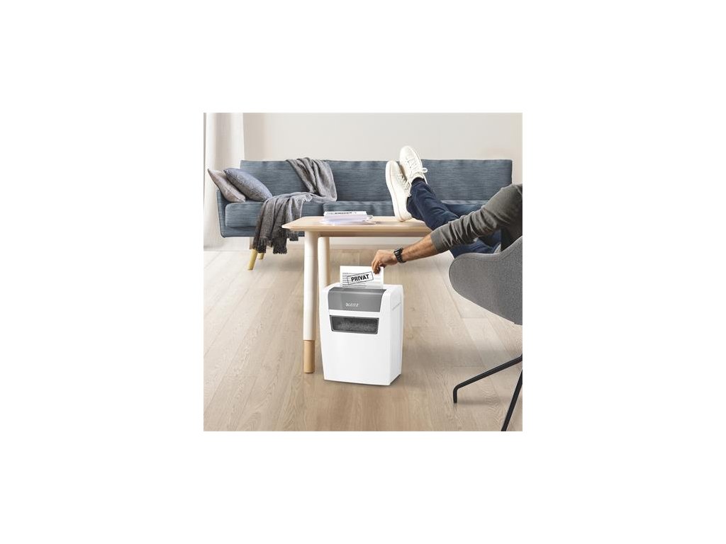 Kompaktné rozmery pre jednoduché umiestnenie, ideálne pre domácnosti a domáce kancelárie. Vneste štýl do svojej pracovne s týmto tichým skartovačom.-skartuje naraz 6x A4 listov (80 g/m²) -rez na častice (bezpečnostná úroveň DIN P-4) -odpadová nádoba s kapacitou 15 l (cca 125 listov A4) -tichá prevádzka skartovania (pri pravidelnom používaní olejovacích listov Leitz) -skartuje aj sponky a kancelárske spinace -3 minúty nepretržitej prevádzky -rozmery: 325 x 343 x 229 mm (š x v x h) -hmotnosť: 3,5 kg