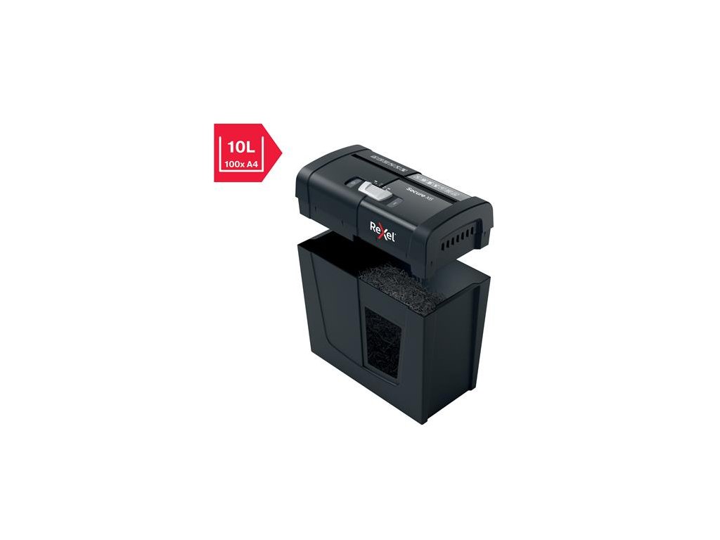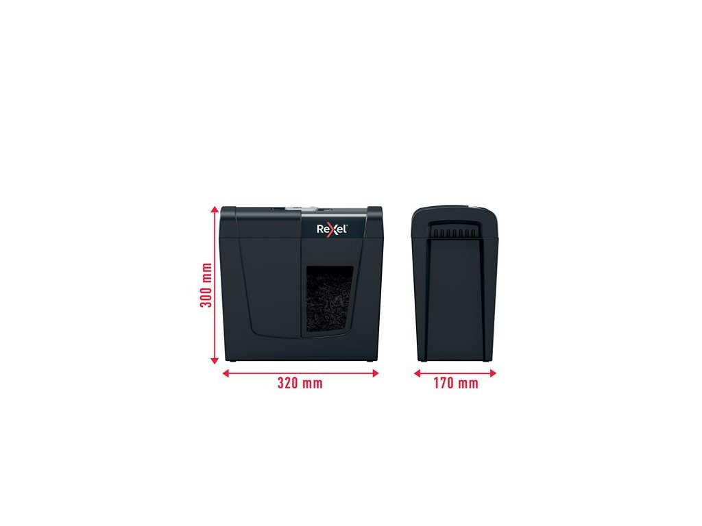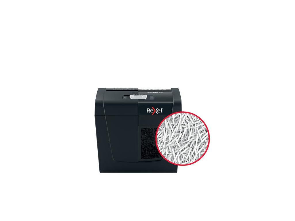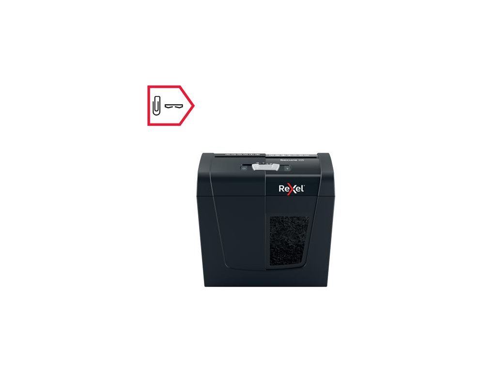 skartovací stroj, na domáce použitie ideálne na zničenie osobných alebo kacelárskych dôverných dokumentov skartuje na konfety úroveň bezpečnosti: P-4 DIN kapacita listov: 6 ks A4 kisltov (80g/m2) objem na odpad: 10 litrov (100 ks A4 listov) skartuje sponky aj spinky späť/naspäť funkcia činnosť: <70dB doba aktivity: 3 minúty 2 ročná záruka na zariadenie 2 ročná záruka na sekáč Značka: REXEL Výrobca: Esselte Kft. Adresa: 1139 Budapest, Lomb u. 37-39. A ép. II. 8., Hungary Web: https://www.accobrands.com/brands/ Email: hungarymarketing@acco.comDodatočné parametre