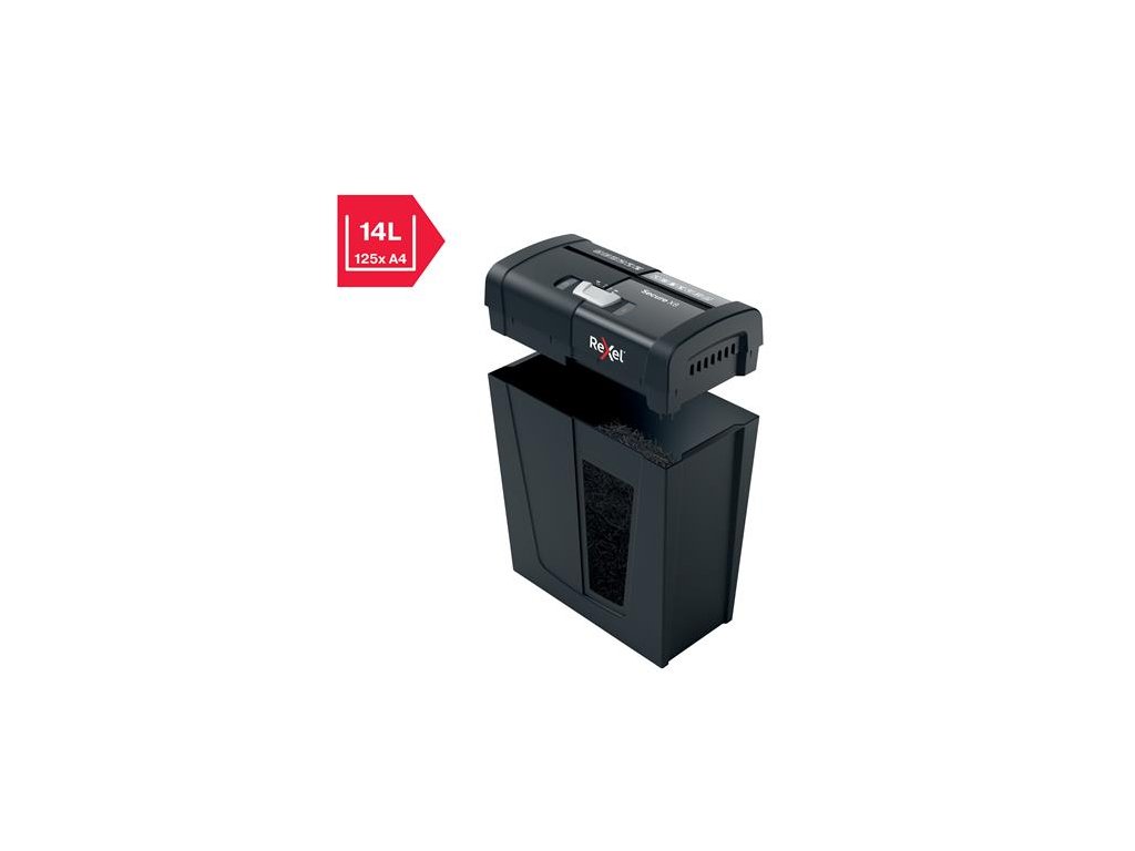 skartovací stroj, na domáce použitie ideálne na zničenie osobných alebo kacelárskych dôverných dokumentov skartuje na konfety úroveň bezpečnosti: P-4 DIN kapacita listov: 8 ks A4 listov (80g/m2) objem na odpad: 14 l (125 ks A4 listov) skartuje sponky aj spinky späť/naspäť funkcia činnosť: <70dB doba aktivity: 3 minúty 2 ročná záruka na zariadenie 2 ročná záruka na sekáč Značka: REXEL Výrobca: Esselte Kft. Adresa: 1139 Budapest, Lomb u. 37-39. A ép. II. 8., Hungary Web: https://www.accobrands.com/brands/ Email: hungarymarketing@acco.comDodatočné parametre
