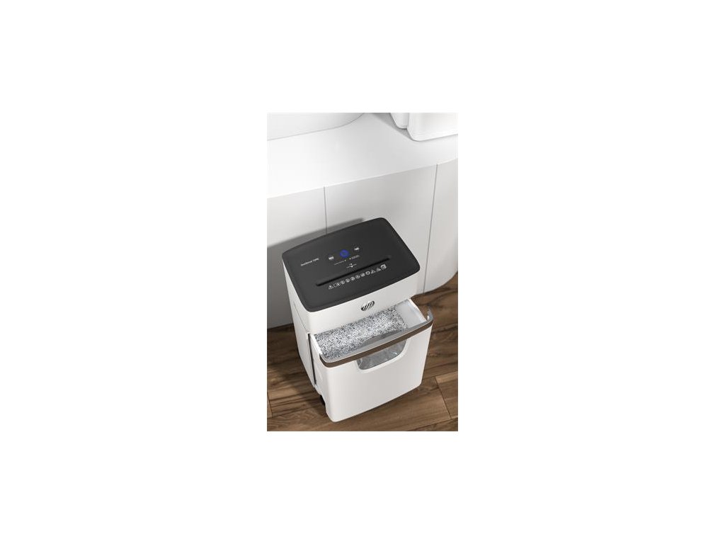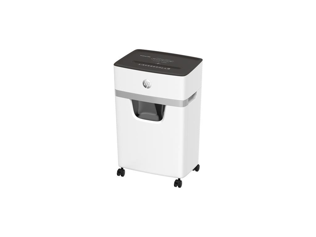 Skartovací stroj pre malú a domácu kanceláriu, pre 1-3 užívateľov. - oblasť používania: malá a domáca kancelária - úroveň bezpečnosti (papier): DIN P-5 - úroveň bezpečnosti (kreditná karta): DIN T-5 - typ rezu: papier - konfety (2x15 mm) - dávkovanie: 10 listov / 80 g papiera - šírka zásobníka na papier: 220 mm - rýchlosť skartovania: 1,6 m (metre) / min - objem zbernej nádrže na odpad: 20 litrov - skartuje: sponky, kreditné karty, spinky - nepretržitá prevádzková doba: 10 minút - čas odpočinku: 50 minút - hlučnosť: 65 dBA - rozmery produktu, hmotnosť: 534 x 354 x 240 mm , 9,4 kg - záruka: 2 roky (zariadenie), 5 rokov (rezacie nože) Značka: HP Výrobca: HP Adresa: HP REG 23010, 08028 Barcelona, Spain Web: https://www.hp.com/hu-hu/home.html Email: reg@hp.comDodatočné parametre