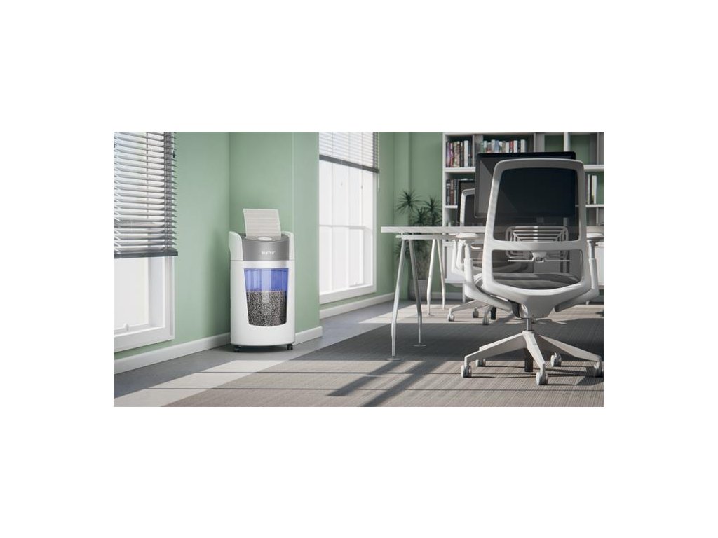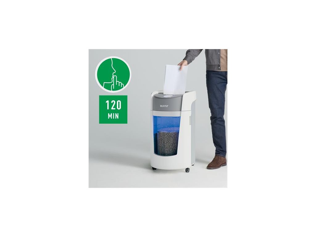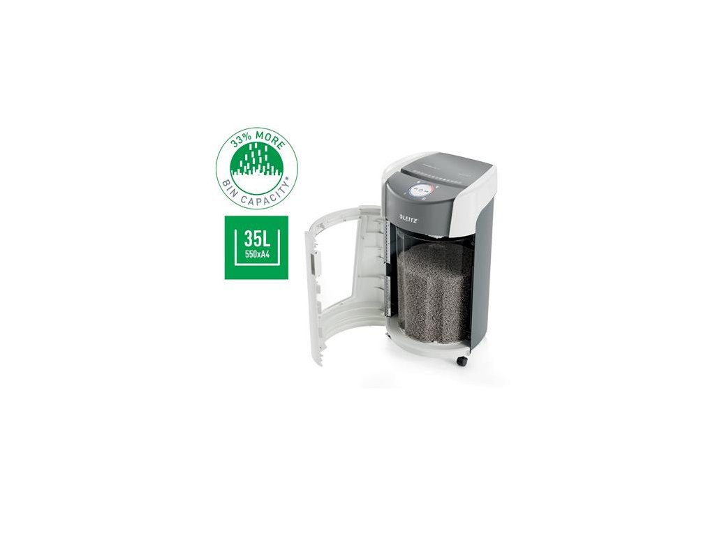 Už za obyčajných 10 sekúnd skartuje až 10 listov papiera A4 (80 g/m2) na vysoko bezpečné (P5) mikročastice.Inovatívna technológia rotujúceho koša (BRT) zvyšuje jeho kapacitu o 33 % a výrazne znižuje možnosť spôsobenia neporiadku pri vysýpaní. *Leitz IQ OptiMax testovaný so skartovačkami s technológiou otočných košov a bez nej.