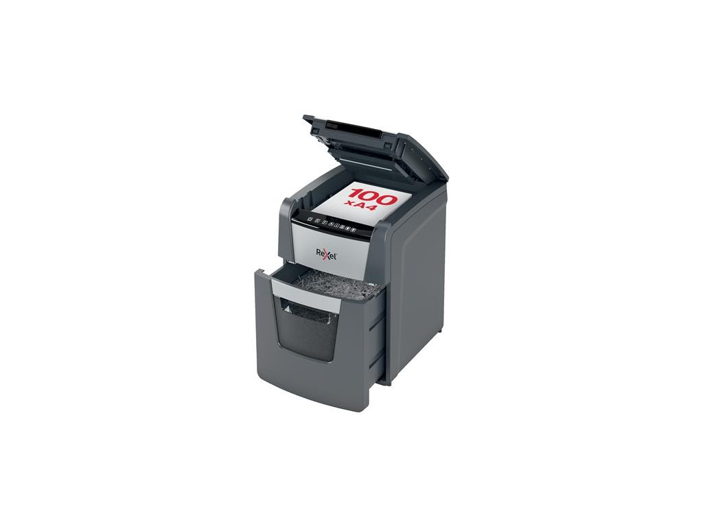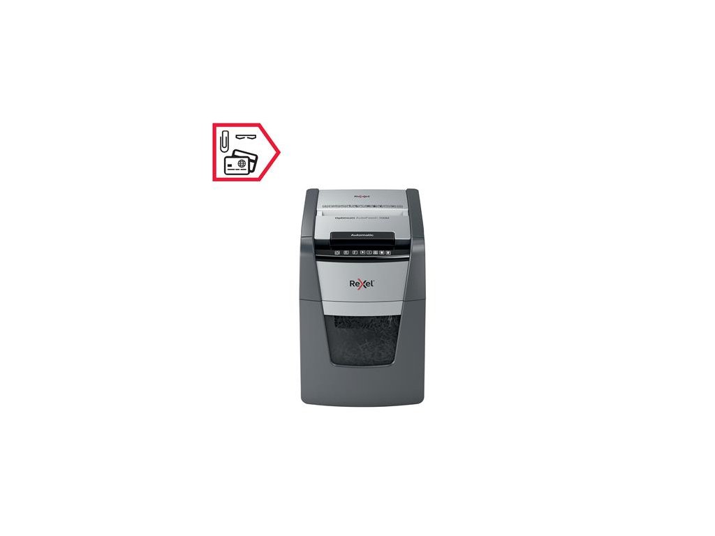 Skartovací stroj, mikrokonfety, 100 listov, REXEL "Optimum AutoFeed+ 100M"