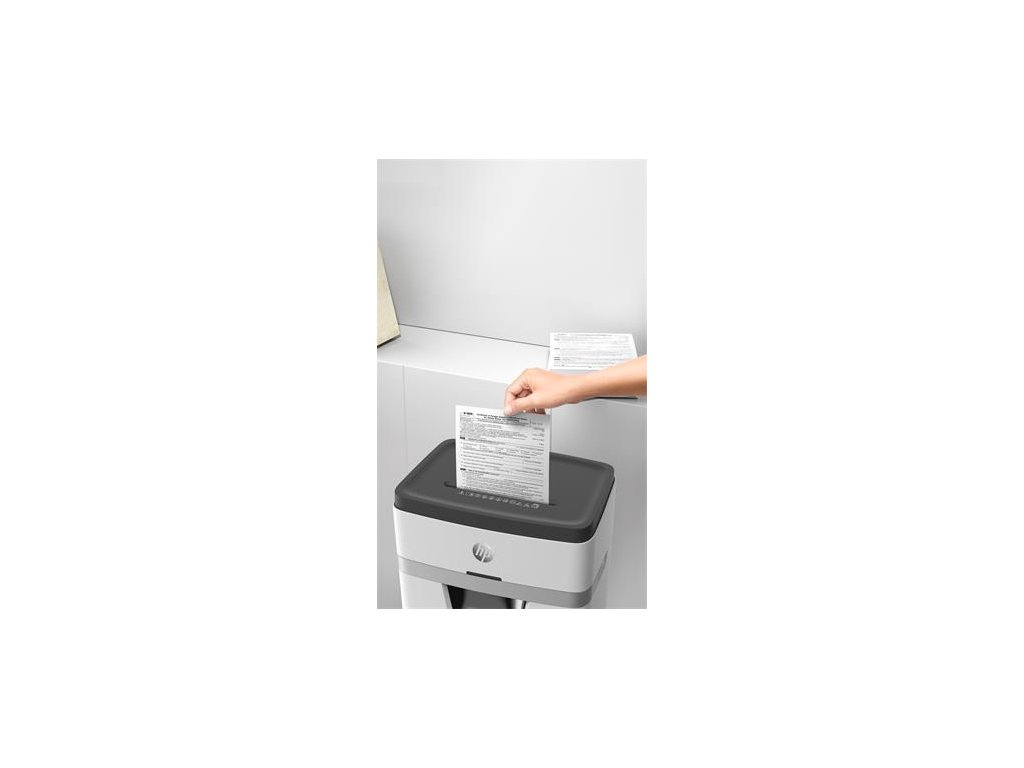 Skartovací stroj pre malú a domácu kanceláriu, pre 3-5 užívateľov. - oblasť používania: malá a domáca kancelária - úroveň bezpečnosti (papier): DIN P-5 - úroveň bezpečnosti (kreditná karta): DIN T-5 - typ rezu: papier - konfety (2x15 mm) - dávkovanie: 12 listov / 80 g papiera - šírka zásobníka na papier: 220 mm - rýchlosť skartovania: 1,6 m (metre) / min - objem zbernej nádrže na odpad: 25 litrov - skartuje: sponky, kreditné karty, spinky - nepretržitá prevádzková doba: 20 minút - čas odpočinku: 20 minút - hlučnosť: 65 dBA - rozmery produktu, hmotnosť: 590 x 400 x 272 mm , 12,2 kg - záruka: 2 roky (zariadenie), 5 rokov (rezacie nože) Značka: HP Výrobca: HP Adresa: HP REG 23010, 08028 Barcelona, Spain Web: https://www.hp.com/hu-hu/home.html Email: reg@hp.comDodatočné parametre
