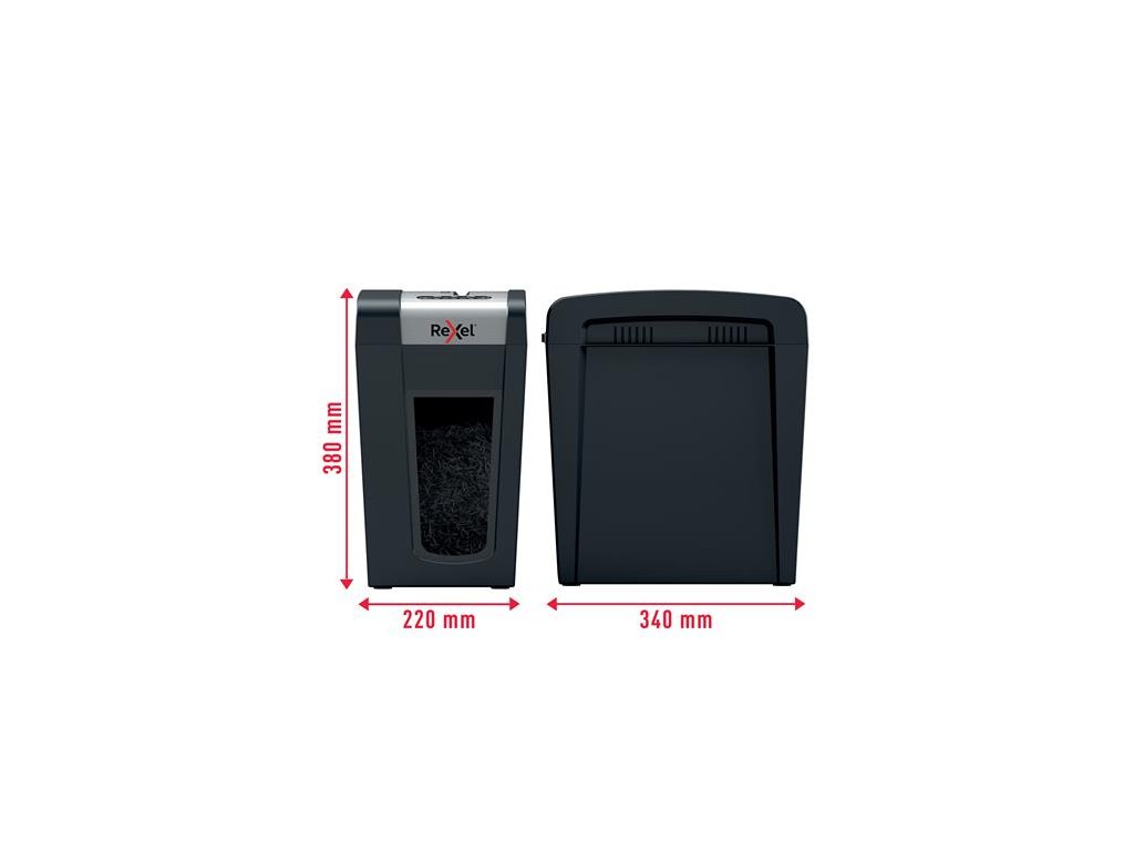 kompaktné, úzke prevedenie skartácia až 6 ks A4 listov naraz úroveň bezpečnosti: P-5 DIN skartuje na konfety (2x15 mm) kôš o objeme 18 l nepretržitá prevádzka po dobu 6 minút nízka hlučnosť Whisper-Shred <60 dBA skartuje sponky aj spinky rozmery produktu: 204 x 355 x 351 hmotnosť: 4,8 kg záruka: 2 roky (zariadenie), 2 roky (rezacie nože) Značka: REXEL Výrobca: Esselte Kft. Adresa: 1139 Budapest, Lomb u. 37-39. A ép. II. 8., Hungary Web: https://www.accobrands.com/brands/ Email: hungarymarketing@acco.comDodatočné parametre