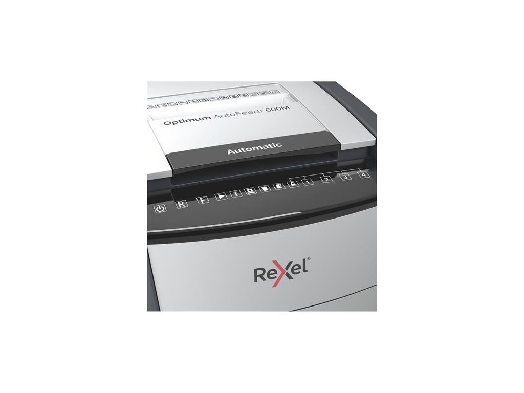 Skartovací stroj, mikrokonfety, 600 listov, REXEL "Optimum AutoFeed+ 600M"