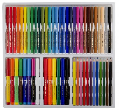 9396 súprava pre malých výtvarníkov 30 vyprateľných fixiek 7 prefarbiteľných značkovačov + 1 zmizík 6 značkovačov so supervyprateľným atramentom 12 pasteliek 4 maľovanky