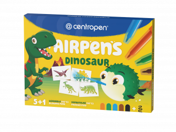 1500/5+1 fúkacie fixky na papier zdraviu neškodlivý atrament ľahko umývateľné a vyprateľné 5 farebných odtieňov, 1 čierna fixka 8 šablón s motívmi dinosaurov 10 hárkov A4
