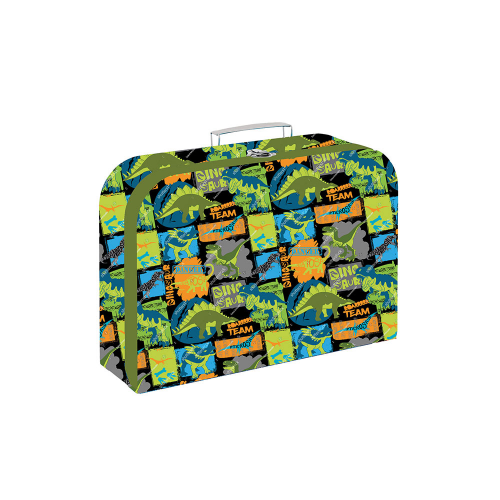 Detský lamino kufrík na výtvarné potreby či hračky. Materiál: papier, lepenka, kovový zámok, kovové nity. Rozmery: 25,5 x 18,5 x 7,8 cm