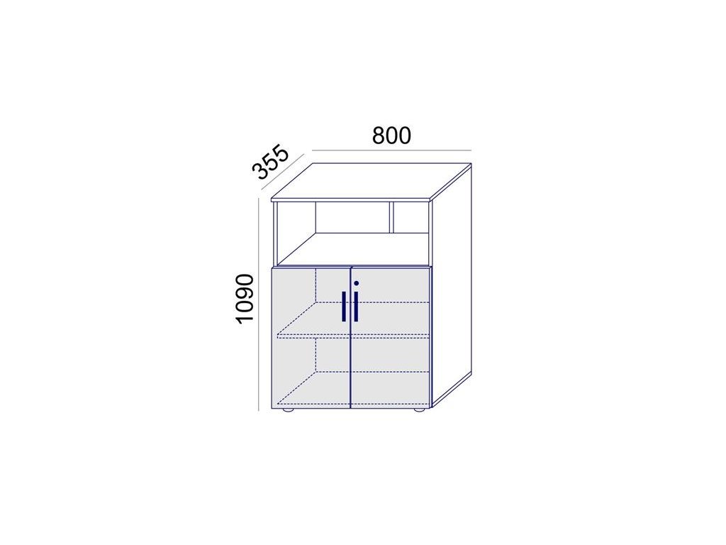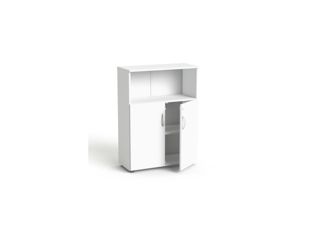 Kombinovaná skriňa, výška na 3 zakladače, s dverovou a otvorenou policovou časťou.Uzamykateľná kľúčom.