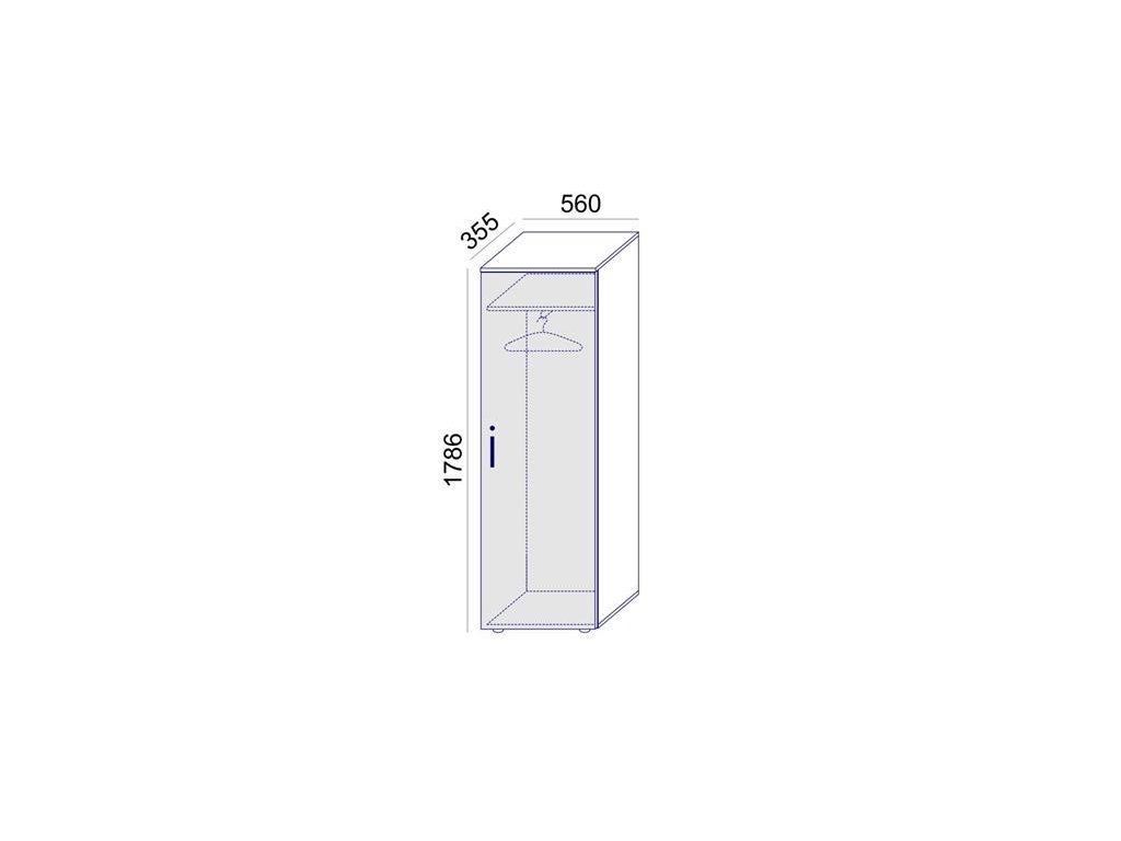 Jednodverová šatníková skriňa s policami, uzamykateľná kľúčom.Rozmery: 1786 x 560 x 355 mm.