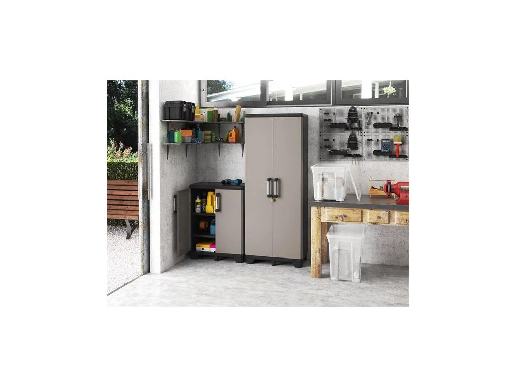 Odolná plastová skriňa vhodná do garáže, na chatu, na terasu alebo do pivnince. - jednoduchá montáž a údržba - dvere uzamykateľné visiacim zámkom (nie je súčasťou balenia) - 2 nastaviteľné police s nosnosťou 20 kg/polica - nastaviteľné nôžky - s certifikátom TUV GS minősítéssel -rozmery skrine: 68x39x90 cm (šírka x hĺbka x výška) - rozmery políc: 63x33 cm - celková hmotnosť: 9 kgDodatočné parametre